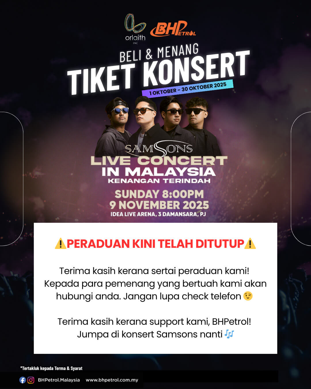 BHPetrol nak bagi 10 PEMENANG TIKET PERCUMA ke Samsons Kenangan Terindah Live in Malaysia!