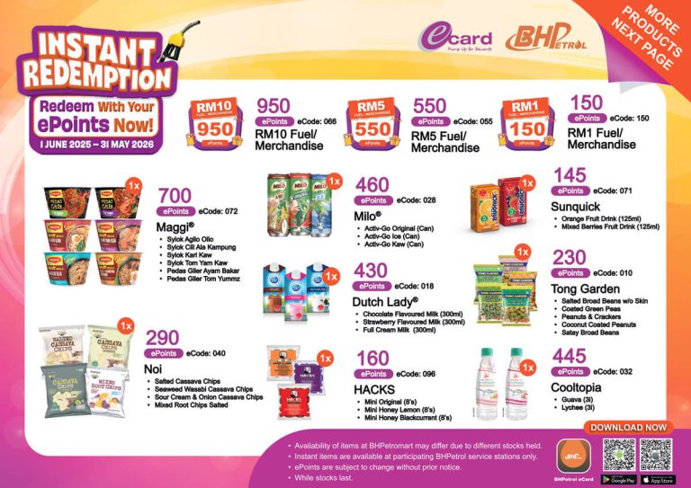 With the 2026 Instant Redemption Campaign, you can use your accumulated ePoints to redeem a variety of goodies available exclusively on the BHPetrol eCard App. Whether you’re treating yourself or picking up something useful, there’s something for everyone.