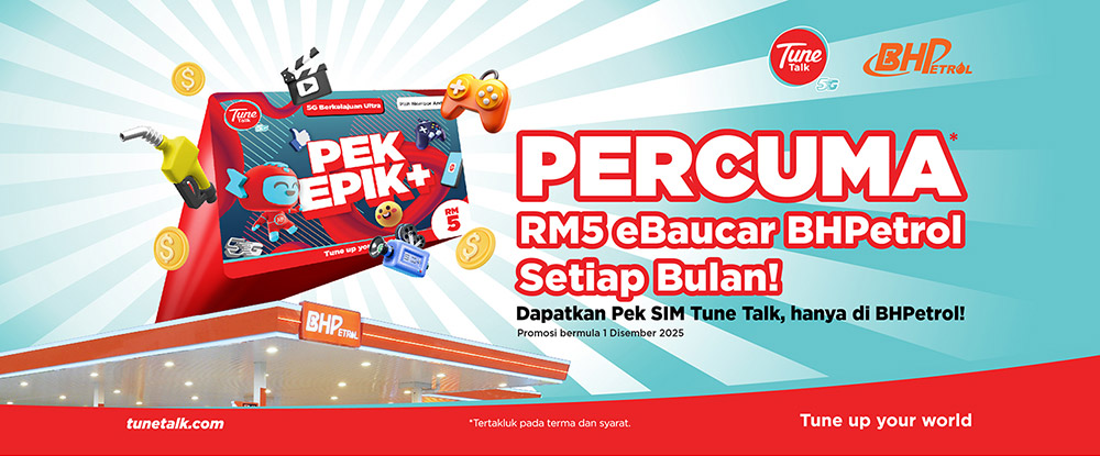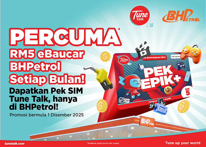 Kempen ini menawarkan Pek SIM Tune Talk PERCUMA (Epik+50 & Epik+35) kepada pelanggan yang mendaftar talian prabayar Tune Talk baharu atau memindahkan nombor sedia ada mereka. Pek SIM boleh didapati di semua BHPetromart di seluruh negara.